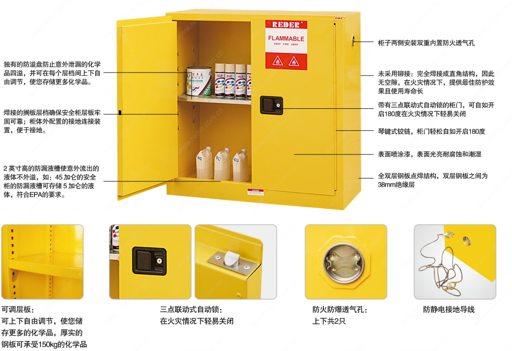 用于规范雷鸟体育弱腐蚀性易燃化学品,蓝色防火安全柜较适宜雷鸟体育弱腐蚀性易燃化学品。"REDER',
